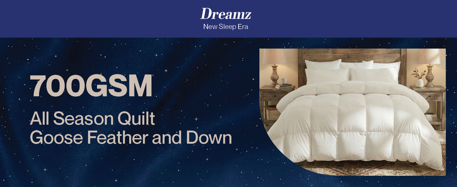 Experience premium comfort with the expertly crafted DreamZ Goose Down Feather Doona. Suitable for comfort throughout the year this top-tier doona features an ultra-deluxe blend of 90% goose feather and 10% goose down. This high-quality filling at a heavy 700GSM weight provides generous natural bounce and loft keeping the doona light breathable and airy. It ensures you are perfectly warm during those colder months without the burden of a heavy restrictive weight.