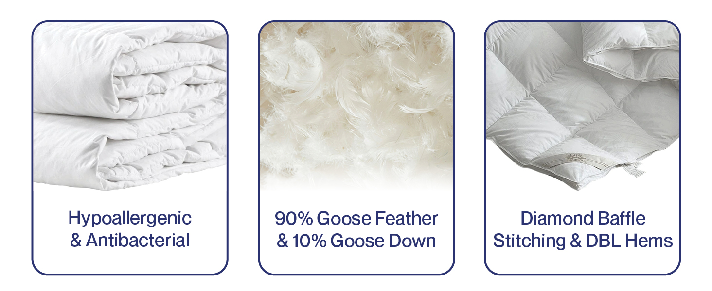 Premium Pipe Edging & Leak-Free Cover: Designed for enduring use the doona features precise pipe edging for a high-quality finish. This strong construction combined with the 100% leak-free soft cotton cover stops feathers from shifting so your doona remains full and supportive for years to come.