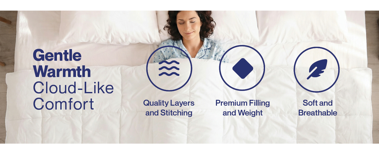 Box-Stitch Baffle Construction & Uniform Warmth: Enjoy steady uniform warmth without any cold patches. The premium box-stitch pattern is built to prevent the down and feather filling from shifting while the baffle wall construction perfectly locks in the warmth for a flawless sleep experience.