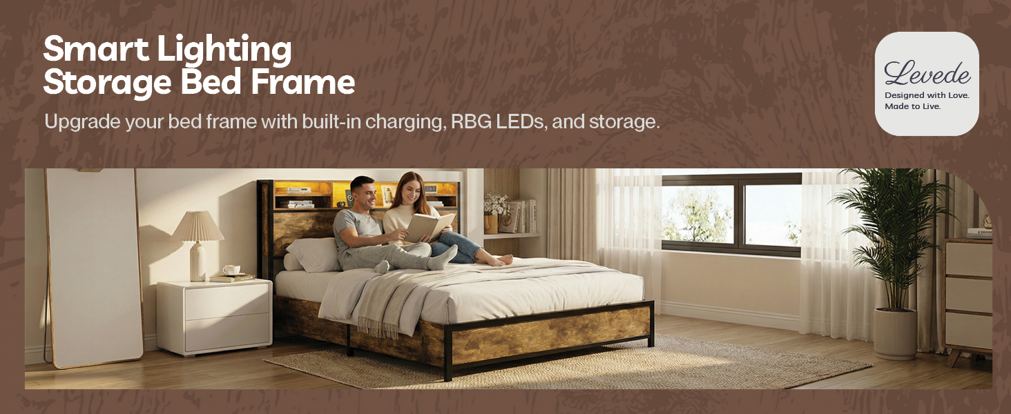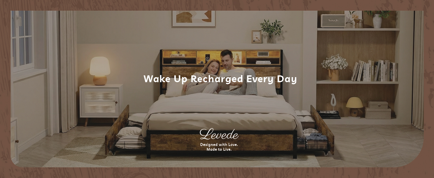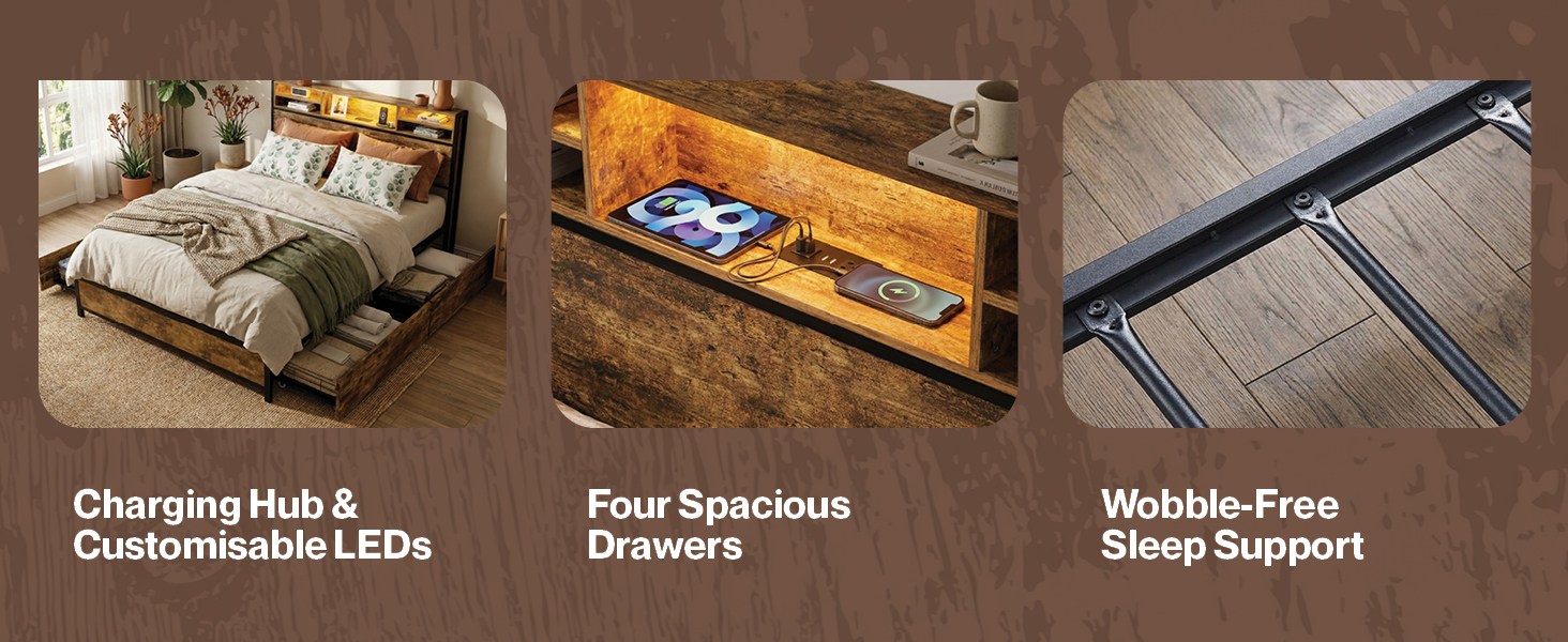 Upgrade your bedroom with the Levede LED Bed Frame with Drawers a perfect blend of modern technology and sturdy design. This smart bed frame features an RGB LED light strip with adjustable brightness helping you create a relaxing atmosphere for any mood. The integrated headboard charging station includes two AC outlets and two USB ports making it ideal for powering phones tablets and bedside gadgets.