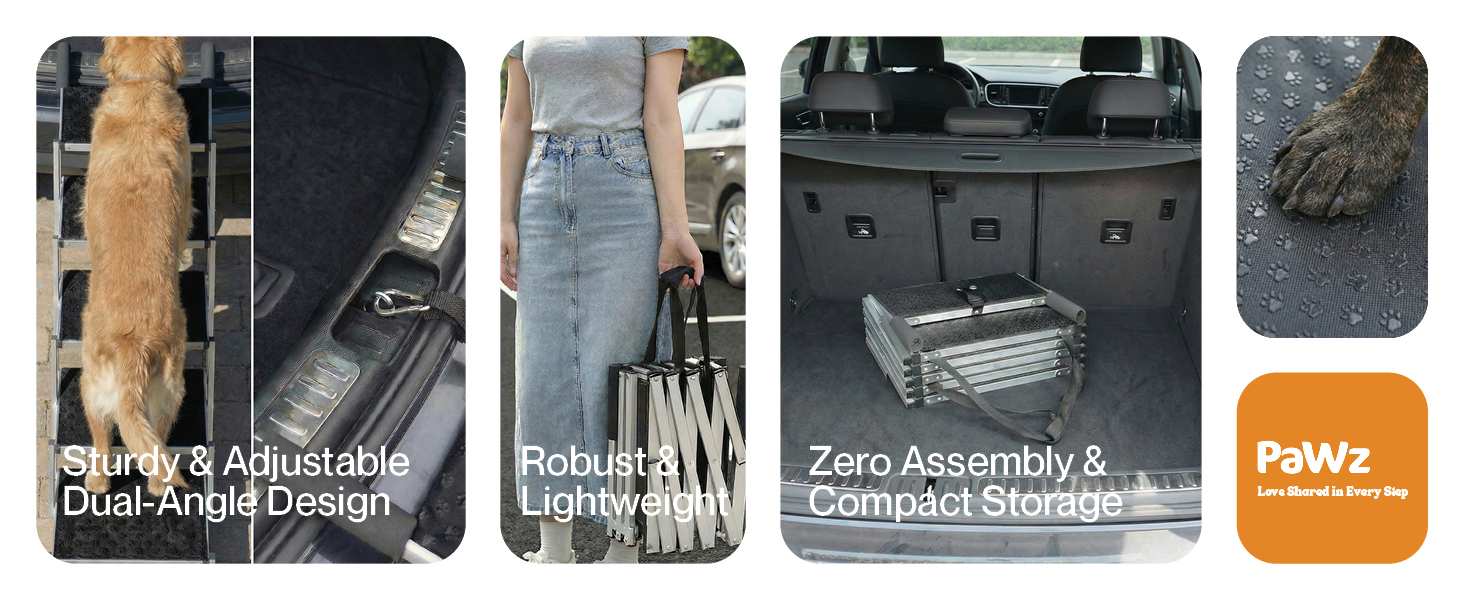 Adjustable Height: Easily customisable to suit a variety of furniture or vehicle heights ensuring a comfortable gradient for your pet.