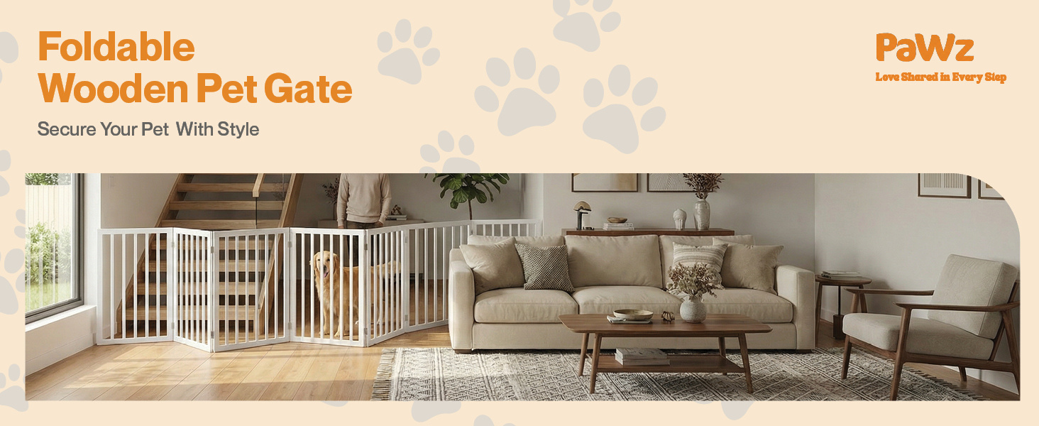 Keep your furry friends safe and your home beautifully secure with the versatile Pawz Wooden Pet Gate. Designed for complete convenience and adaptability this foldable barrier is perfect for safeguarding your spaces keeping your pets out of restricted areas and giving you absolute peace of mind. Whether you are protecting household valuables securing staircases or creating a safe play zone this gate offers a sturdy freestanding solution that looks fantastic in any modern home.